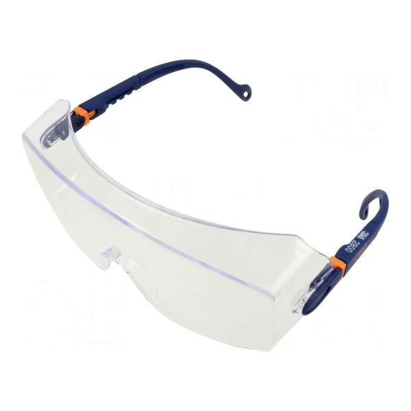 Okulary ochronne wyposażone w soczewkę przezroczystą zapewniającą widoczność w standardowych warunkach pracy. Element ten posiada klasę optyczną 1, co oznacza wysoką jakość wykonania soczewek bez zniekształceń obrazu podczas długotrwałego noszenia.