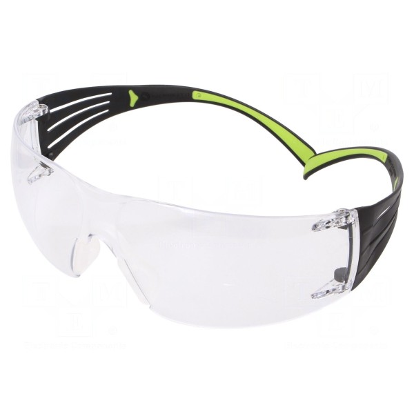 Okulary ochronne z przezroczystymi soczewkami poliwęglanowymi zostały zaprojektowane z myślą o ochronie przed promieniowaniem UVA oraz UVB na poziomie 99,9%. Konstrukcja modelu jest panoramiczna i lekka, co przekłada się na masę własną wynoszącą 19 g. Soczewki są odporne na uderzenia, a także posiadają dodatkową powłokę ograniczającą parowanie oraz zarysowania.