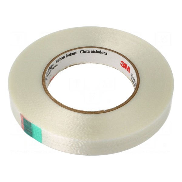 Taśma elektroizolacyjna 3M o szerokości 19 mm i długości 55 m wykonana została z tkaniny poliestrowej wzmocnionej włóknem szklanym. Produkt charakteryzuje się grubością 0,165 mm oraz zastosowaniem kleju akrylowego, co zapewnia przyczepność do stali na poziomie 3,81 N/cm. Dzięki swojej konstrukcji taśma osiąga wytrzymałość dielektryczną wynoszącą 5,5 kV oraz rezystancję izolacji minimum 100 GΩ.