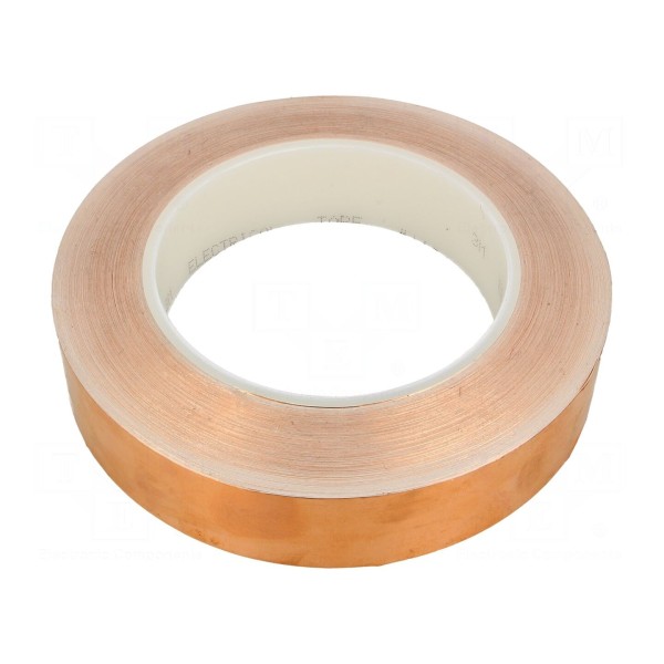 Taśma elektroprzewodząca wykonana z miedzi przeznaczona jest do zadań związanych z ekranowaniem oraz uziemianiem. Produkt charakteryzuje się grubością 0,066 mm, przy szerokości 25 mm oraz długości 33 m na rolce.