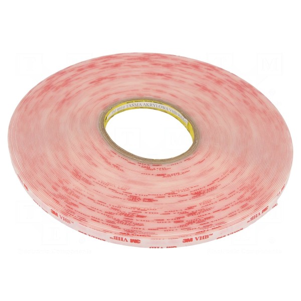 Taśma mocująca 3M 4910 o szerokości 9mm i długości 33m została wykonana z przezroczystej pianki akrylowej o grubości 1mm. Zastosowany rodzaj kleju akrylowego zapewnia wysoką wytrzymałość mechaniczną oraz rezystancję elektryczną. Produkt wykazuje odporność na wilgoć oraz działanie większości rozpuszczalników.