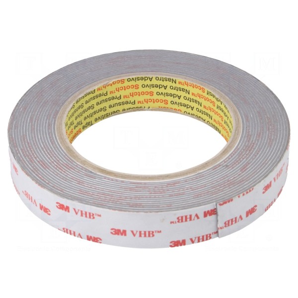 Taśma mocująca 3M o szerokości 19 mm i długości 5 m wykonana jest z pianki akrylowej, co nadaje jej dwustronne właściwości klejące. Produkt charakteryzuje się grubością 1,1 mm oraz szarym kolorem nośnika. Zastosowany klej akrylowy pozwala na osiągnięcie wysokiej wytrzymałości mechanicznej oraz rezystancji elektrycznej.