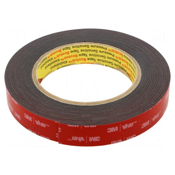 Taśma mocująca 3M o szerokości 19 mm i długości 5,5 m została wykonana na nośniku z pianki akrylowej. Produkt charakteryzuje się grubością 1,1 mm oraz wykorzystuje klej akrylowy, co zapewnia dwustronne właściwości klejące. Jest to czarna taśma zaprojektowana do łączenia oraz mocowania elementów.
