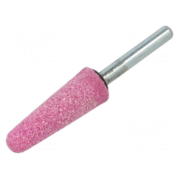 Kamienie szlifierskie wykonane z ceramiki przeznaczone są do obróbki elementów metalowych oraz stalowych. Element charakteryzuje się stożkowym kształtem, który umożliwia pracę w różnorodnych warunkach warsztatowych. Produkt wyposażony jest w trzpień o średnicy 6 mm, co pozwala na montaż w odpowiednich uchwytach elektronarzędzi. Wymiary robocze kamienia wynoszą Ø16x45 mm.
