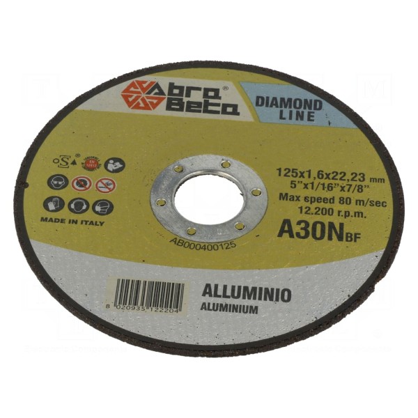 Tarcza tnąca o średnicy 125 mm i grubości 1,6 mm przeznaczona jest do obróbki materiałów takich jak aluminium, brąz oraz mosiądz. Parametry techniczne pozwalają na wydajne cięcie metali nieżelaznych przy użyciu kompatybilnych elektronarzędzi.