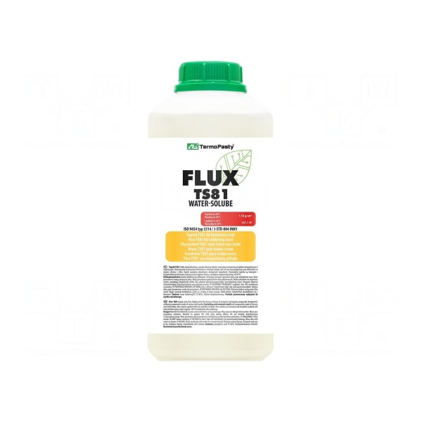 Topnik SW13 to bezkalafoniowy preparat w postaci płynu, przeznaczony do procesów lutowania. Charakteryzuje się zawartością ciał stałych na poziomie 10% oraz gęstością 1,27g/cm³ w temperaturze 20°C. Produkt jest zgodny z normą PN EN 29454 i posiada właściwości typu Water Soluble.