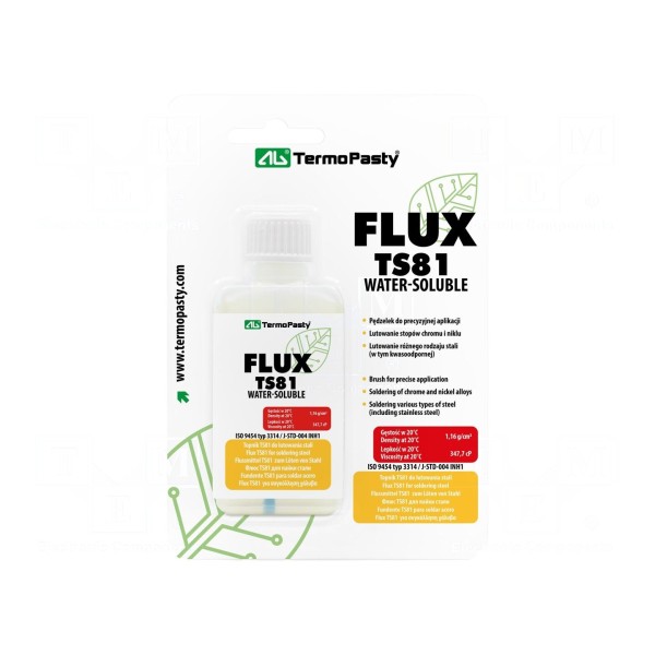 Produkt wykazuje właściwości korozyjne, dlatego po zakończeniu pracy należy usunąć pozostałości topnika. Jest on przeznaczony do lutowania stali, w tym stali kwasoodpornej oraz stopów chromonikiel. W zestawie znajduje się pędzelek ułatwiający aplikację płynu z butelki o pojemności 50ml.