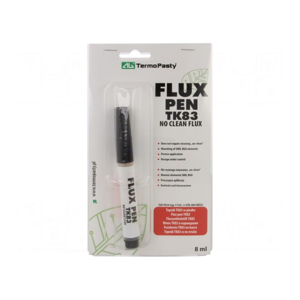 Topnik kalafoniowy SW26 typu No Clean przeznaczony jest do procesów lutowniczych. Preparat występuje w formie płynnej i jest aplikowany za pomocą wygodnego pisaka, co pozwala na precyzyjne nanoszenie substancji na obrabiane powierzchnie. Produkt charakteryzuje się gęstością 860mg/cm³ w temperaturze 20°C oraz zawartością ciał stałych na poziomie 24%.