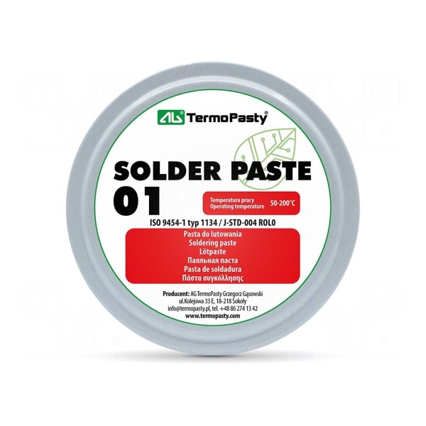 Produkt charakteryzuje się niekorozyjnymi właściwościami pozostałości po procesie lutowania. Pasta dostarczana jest w puszce o pojemności 0,1l, co umożliwia wygodne dozowanie preparatu podczas prac montażowych i serwisowych.