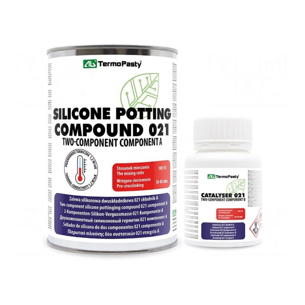 Dwuskładnikowa zalewa silikonowa sieciowana kondensacyjnie w postaci pasty przeznaczona jest do uszczelniania i hermetyzacji układów elektronicznych. Produkt charakteryzuje się odpornością termiczną w zakresie od –50°C do 200°C oraz gęstością 1,2g/cm³ w temperaturze 25°C. Materiał posiada przewodność cieplną na poziomie 1,2W/mK oraz stałą dielektryczną równą 3.