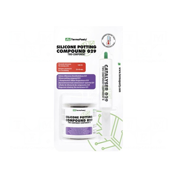 Zalewa silikonowa ART.AGT-221 to dwuskładnikowy preparat chemiczny w postaci pasty, przeznaczony do uszczelniania i hermetyzacji układów elektronicznych. Produkt charakteryzuje się utwardzaniem typu RTV w procesie sieciowania kondensacyjnego. Przy proporcjach mieszania 100:10 czas wiązania mieszanki wynosi 30 minut.