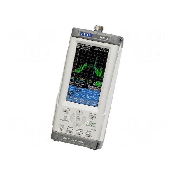 Analizator widma PSA3605 oferuje zakres częstotliwości pracy od 10 MHz do 3600 MHz przy rozdzielczości 100 Hz. Impedancja wejściowa urządzenia wynosi 50 Ω, a pomiary amplitudy mogą być prezentowane w jednostkach dBm lub dBµV, z regulowanym poziomem odniesienia w przedziale od -40 dBm do 20 dBm.
