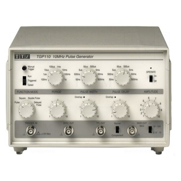 Generator sygnałowy AIM-TTI TPG110 to laboratoryjne urządzenie wyposażone w jeden kanał wyjściowy, umożliwiające pracę w zakresie częstotliwości od 0,1Hz do 10MHz. Generuje przebiegi typu impuls oraz prostokątny, przy czym impedancja wyjściowa urządzenia wynosi 50Ω.