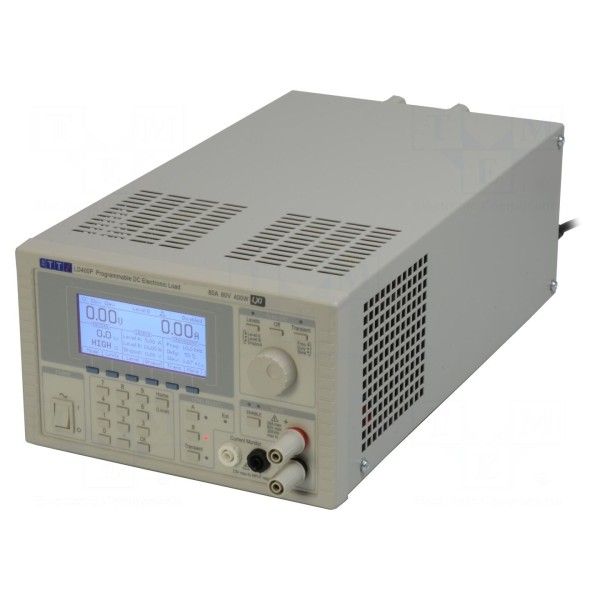 Obciążenie elektroniczne LD400P umożliwia pracę w trybach stałego prądu, stałego napięcia, stałej rezystancji, stałej mocy oraz stałej konduktancji. Urządzenie dysponuje maksymalną mocą 400W przy zakresie pracy 0–80V oraz 0–80A. Konstrukcja pozwala na testowanie źródeł napięcia stałego DC, takich jak zasilacze, baterie czy ogniwa słoneczne, z wykorzystaniem regulowanego napięcia granicznego dla testów baterii. Sprzęt wyposażono również w generator stanów nieustalonych.