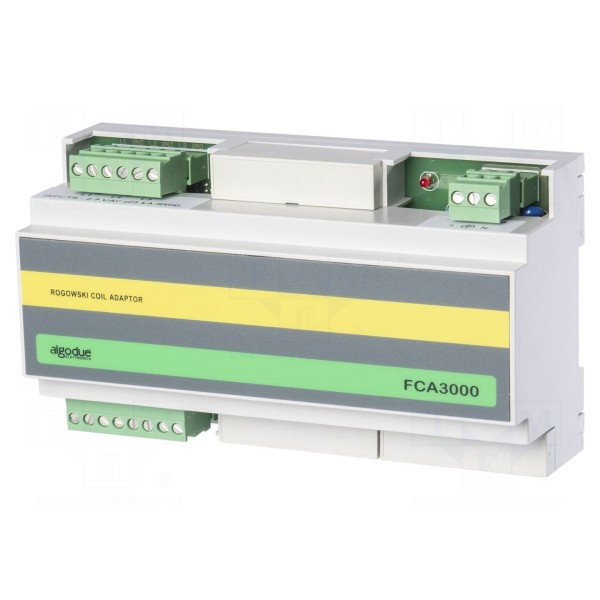 Konwerter ALGODUE 2101.0008.0001 przeznaczony jest do współpracy z cewkami Rogowskiego w układach 3-fazowych. Urządzenie pozwala na pomiar prądu AC o wartości do 10kA w zakresie częstotliwości od 45Hz do 65Hz. Zasilanie urządzenia odbywa się przy napięciu znamionowym 80V lub 260V, a pobór mocy wynosi 3VA.