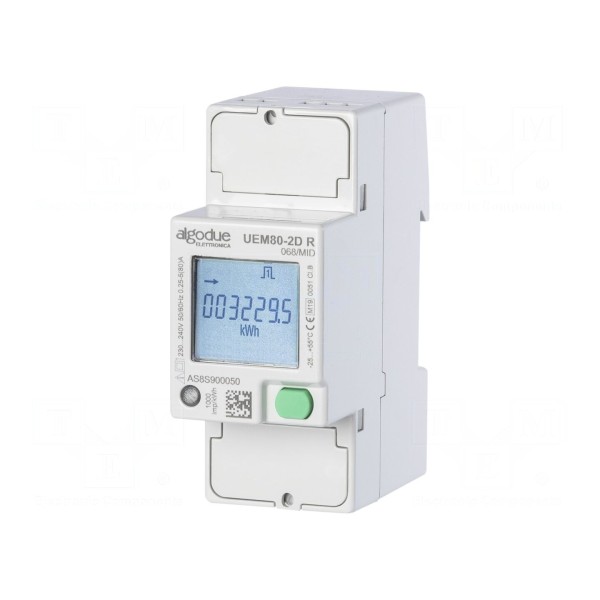 Licznik energii ALGODUE 1107.0009.0001 to cyfrowe urządzenie montażowe przeznaczone do pomiaru bezpośredniego w sieciach 1-fazowych. Urządzenie rejestruje parametry energii elektrycznej czynnej, biernej oraz pozornej, a także umożliwia monitorowanie częstotliwości, napięcia AC i prądu AC. Działa w zakresie napięcia wejściowego od 230V do 240V przy częstotliwości pracy 50–60Hz, osiągając klasę dokładności B.