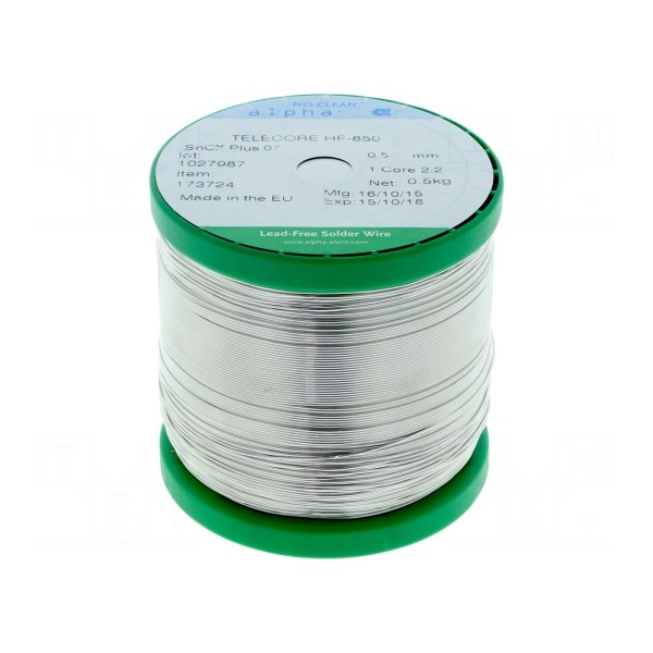 Bezołowiowy drut lutowniczy o składzie stopu Sn99,3Cu0,7 przeznaczony jest do lutowania miękkiego. Spoiwo występuje w postaci drutu nawiniętego na szpulę o masie całkowitej 0,5 kg oraz średnicy 0,5 mm. Temperatura topnienia materiału mieści się w zakresie od 227°C do 229°C.