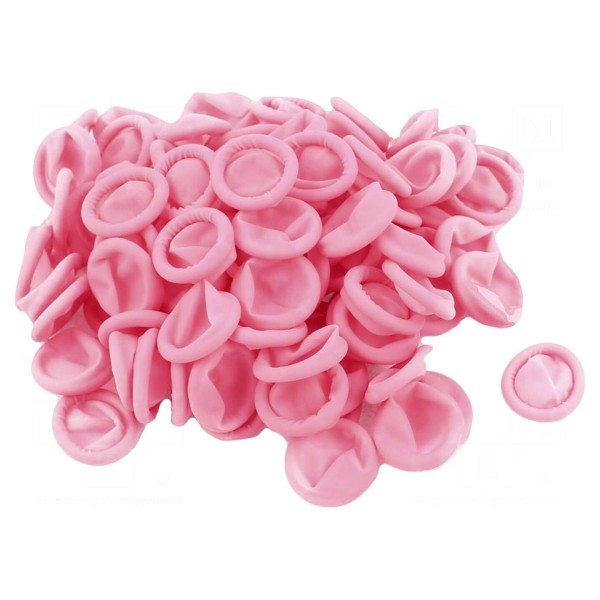 Nakładki na palce wykonane z lateksu w kolorze różowym przeznaczone do użytku w środowiskach cleanroom klasy ISO 5. Produkt w wersji ESD charakteryzuje się właściwościami rozpraszającymi, a jego rezystancja powierzchniowa wynosi poniżej 1 TΩ.