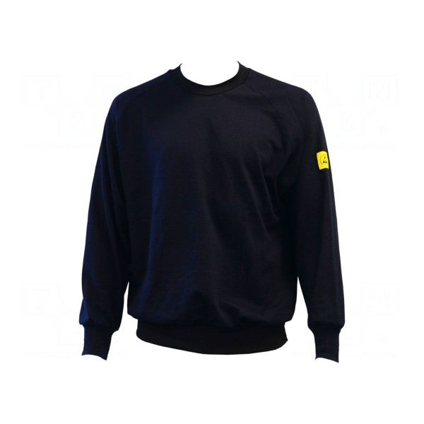 Produkt spełnia wymagania normy EN 61340-5-1. Bluza posiada ciemnoniebieski kolor i jest przystosowana do prania w temperaturze do 40°C.