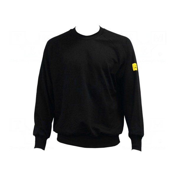 Produkt jest zgodny z normą EN 61340-5-1, co potwierdza jego parametry ochronne. Bluza występuje w kolorze czarnym i rozmiarze L. Producent dopuszcza pranie odzieży w temperaturze do 40°C.