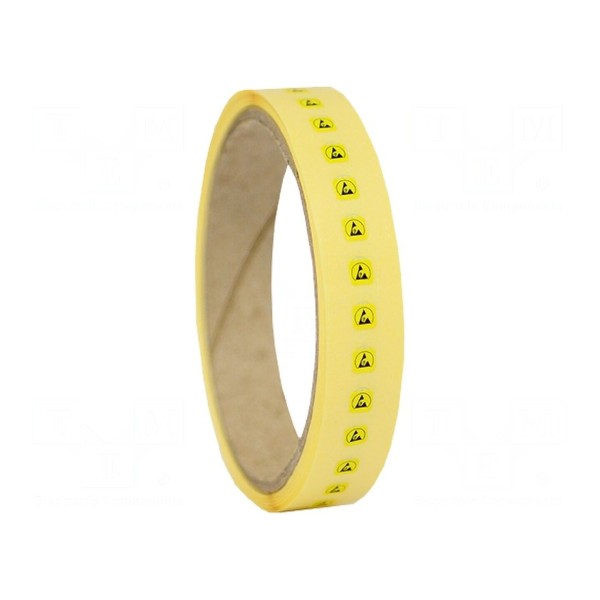 Etykieta samoprzylepna typu ESD służy do oznaczania komponentów oraz miejsc zagrożonych wyładowaniami elektrostatycznymi. Produkt posiada wymiary 5x5mm i charakteryzuje się kolorystyką czarno-żółtą.