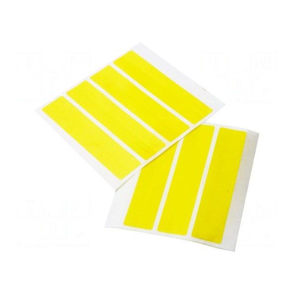 Łączniki antystatyczne w kolorze żółtym charakteryzują się szerokością 16 mm. Elementy posiadają właściwości samoprzylepne, co ułatwia ich montaż w środowisku pracy.