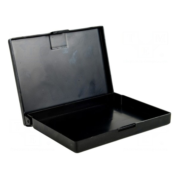 Pojemnik posiada czarny kolor i wymiary zewnętrzne wynoszące 108x85x18mm. Rezystancja powierzchniowa materiału wynosi poniżej 10kΩ.