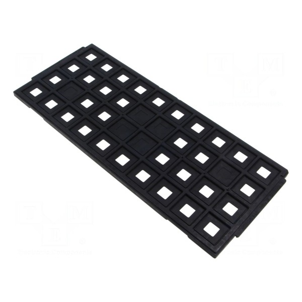 Konstrukcja tacki o wymiarach 320x135 mm posiada 34 otwory, z których każdy przystosowany jest do elementu o wymiarach 24x24 mm. Akcesorium cechuje się wytrzymałością temperaturową sięgającą 130°C i zostało wykończone w kolorze czarnym.