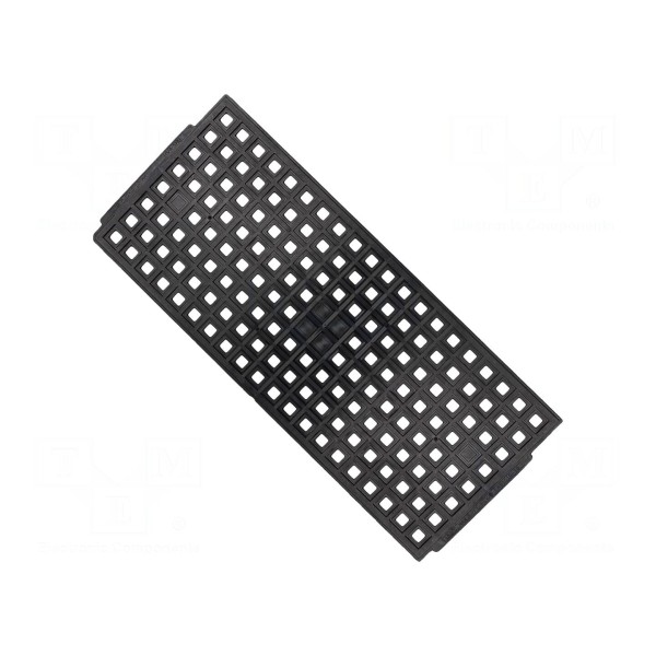 Element posiada 154 otwory o wymiarach 10x10x1 mm. Konstrukcja tacki w kolorze czarnym zapewnia wytrzymałość temperaturową na poziomie 150°C. Całość jest zgodna z normami JEDEC.