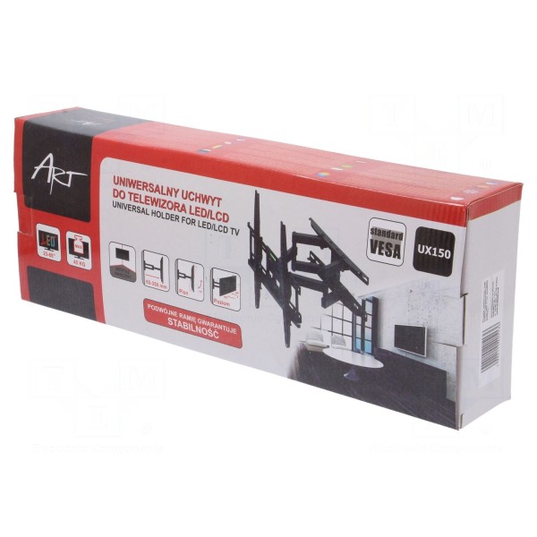Uchwyt przeznaczony do montażu telewizorów typu LCD oraz LED. Konstrukcja uchwytu posiada funkcję uchylną, umożliwiającą regulację kąta nachylenia ekranu względem ściany.