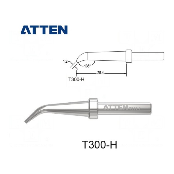 Grot przeznaczony do lutownic grzałkowych charakteryzuje się płaskim, zagiętym kształtem. Wymiar końcówki roboczej wynosi 1,2mm.