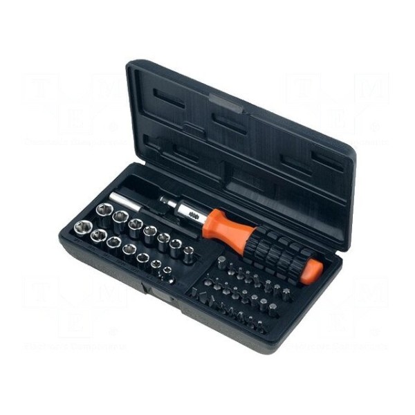Zestaw 40 kluczy nasadowych i końcówek wkrętakowych ze stali CrV