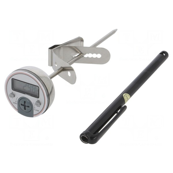 Konstrukcja urządzenia spełnia wymogi klasy szczelności IP67, co zapewnia ochronę przed wilgocią i pyłem. Funkcjonalność miernika obejmuje automatyczne wyłączanie oraz funkcję HOLD, która umożliwia zatrzymanie wskazań na ekranie. Zasilanie jednostki realizowane jest za pomocą jednej baterii 393 o napięciu 1,5V.