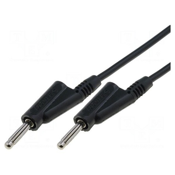Konstrukcja elementu opiera się na obustronnych wtykach bananowych 4mm, które zostały wyposażone w gniazdo osiowe 4mm. Przewód w kolorze czarnym jest przeznaczony do połączeń w układach pomiarowych.