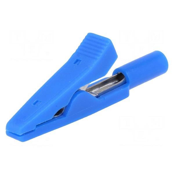 Zacisk krokodylkowy 10A, 60V DC, kolor niebieski