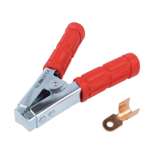 Konstrukcja zacisku wykonana została ze stali, a styki poddano procesowi cynowania w celu zabezpieczenia powierzchni. Całkowita długość akcesorium wynosi 165 mm, a element dostępny jest w kolorze czerwonym.