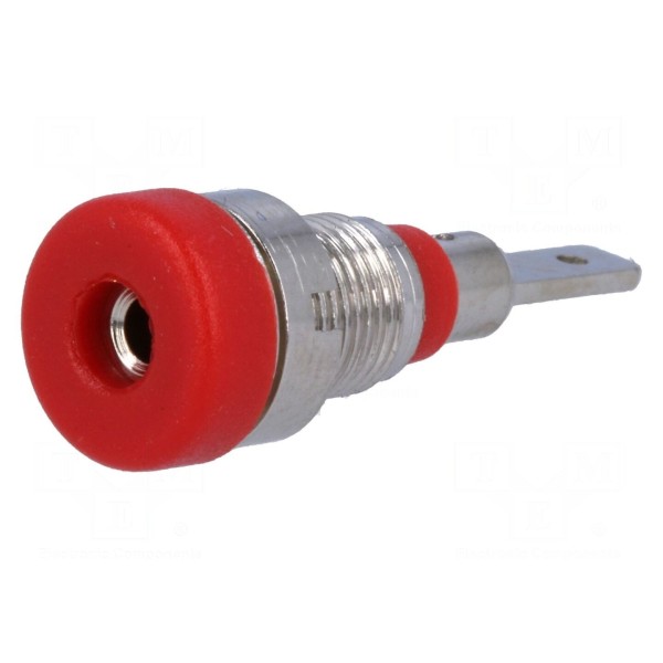 Złącze bananowe 2mm, gniazdo, prąd znamionowy 10A, czerwone
