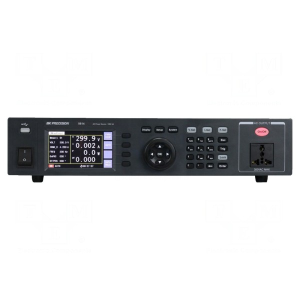 Zasilacz laboratoryjny B&K PRECISION BK9814-220V to programowalne urządzenie jednokanałowe prądu przemiennego. Oferuje napięcie wyjściowe do 300V AC przy maksymalnym prądzie wyjściowym 12,6A oraz częstotliwość pracy w zakresie od 45Hz do 500Hz. Rozdzielczość parametrów wyjściowych wynosi 0,1V dla napięcia oraz 0,1mA dla prądu, co zapewnia precyzję w kontrolowanych warunkach laboratoryjnych.