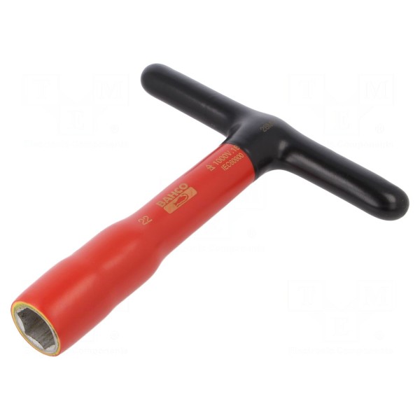 Klucz nasadowy typu T został wykonany ze stali stopowej. Narzędzie wyposażone jest w gniazdo HEX o rozmiarze 22 mm oraz posiada izolację przystosowaną do pracy pod napięciem do 1 kV.