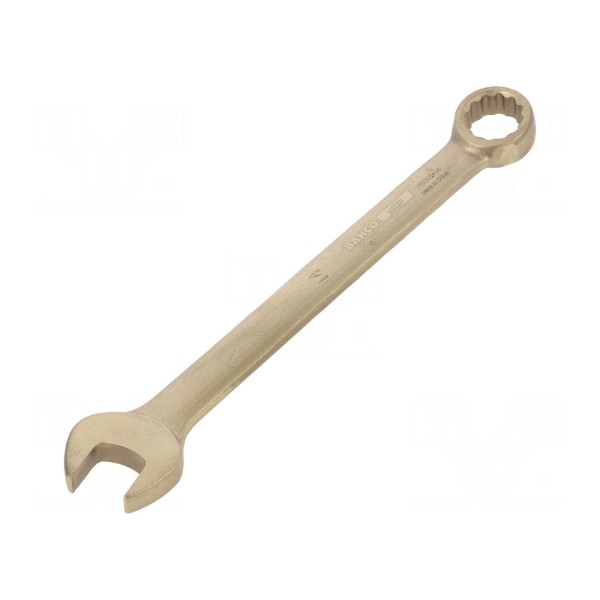 Klucz płasko-oczkowy dwustronny o rozmiarze 14 mm wykonany jest z brązu aluminiowego. Narzędzie w wersji nieiskrzącej przeznaczone jest do prac w środowiskach wymagających podwyższonego poziomu bezpieczeństwa.