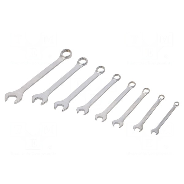 Zestaw kluczy płasko-oczkowych, 8 sztuk, rozmiary 8–22mm