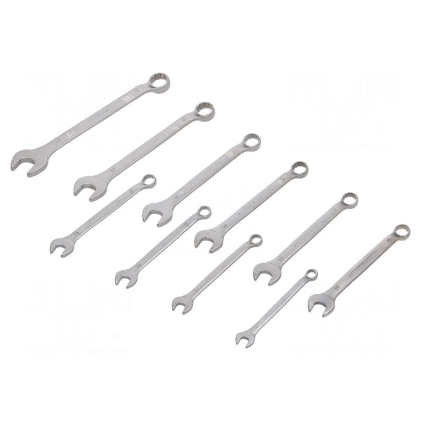 Zestaw kluczy płasko-oczkowych odgiętych 8–19mm, 10 sztuk