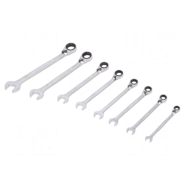 Zestaw 8 kluczy płasko-oczkowych z grzechotką 8–19mm