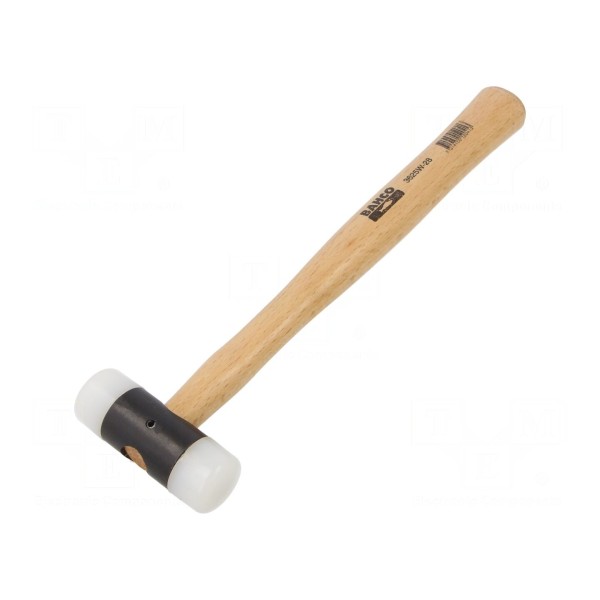 Całkowita długość narzędzia wynosi 275mm, przy szerokości elementu roboczego 80mm oraz średnicy końcówki 28mm. Dzięki zastosowanym materiałom młotek jest przeznaczony do prac wymagających delikatniejszego uderzenia bez ryzyka uszkodzenia powierzchni.
