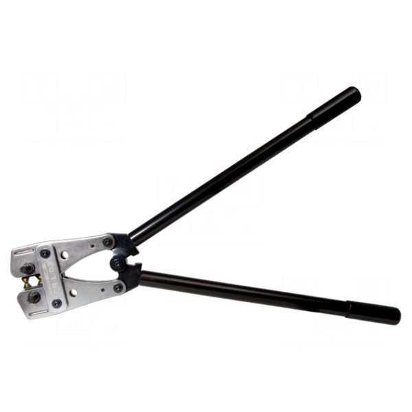 Narzędzie do zaciskania końcówek oczkowych rurowych obsługuje przewody o przekroju od 25mm² do 150mm². Konstrukcja wykonana ze stali posiada długość całkowitą wynoszącą 650mm. Zastosowany układ dźwigniowy wpływa na obsługę narzędzia podczas pracy. Urządzenie zostało wyposażone w obrotowe szczęki zaciskowe, co pozwala na szeroki zakres zastosowań w procesie obróbki końcówek. W zestawie: obrotowe szczęki zaciskowe.