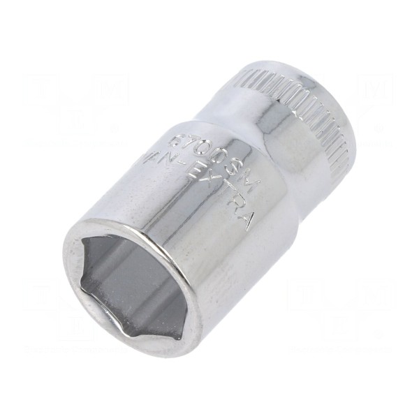 Nasadka 6-kątna o rozmiarze HEX 4,5 mm przeznaczona jest do współpracy z uchwytami o gnieździe 1/4". Narzędzie wykonano ze stali stopowej, a jego zewnętrzna powierzchnia została poddana procesowi polerowania.