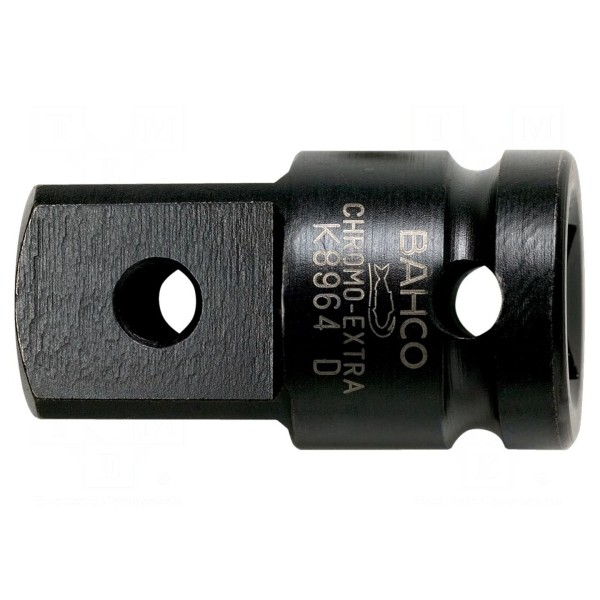 Redukcja udarowa BAHCO K8964D wykonana została ze stali stopowej, co zapewnia jej odpowiednią wytrzymałość podczas pracy z narzędziami pneumatycznymi. Element o długości 45 mm umożliwia przejście pomiędzy gniazdem o rozmiarze 1/2" a trzpieniem 3/4".