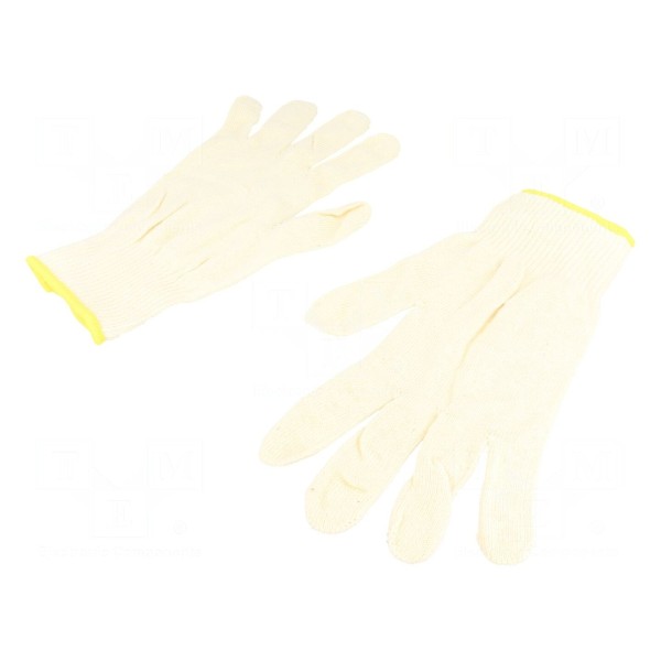 Rękawice ochronne wykonane z bawełny stanowią element wyposażenia BHP. Produkt występuje w rozmiarze 10 i charakteryzuje się konstrukcją nieizolowaną.