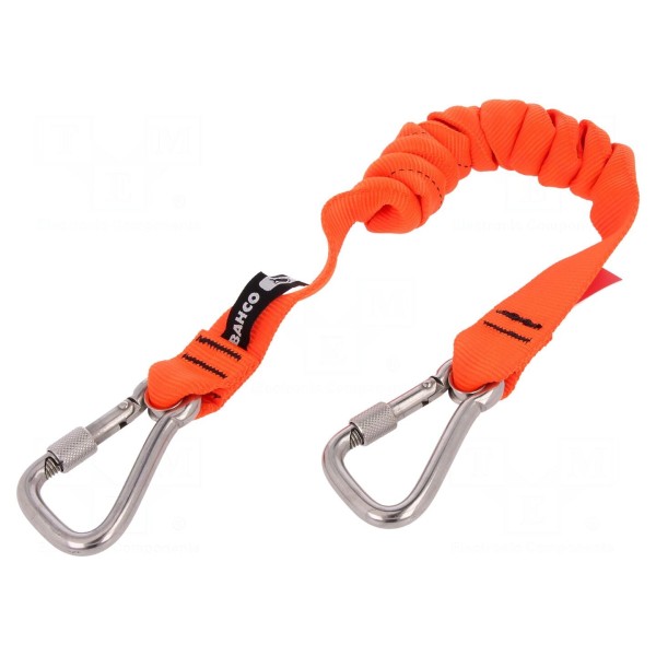 Smycz narzędziowa o długości maksymalnej 1m przeznaczona jest do zabezpieczania sprzętu podczas pracy na wysokości. Konstrukcja akcesorium pozwala na przenoszenie obciążeń do 12kg, co minimalizuje ryzyko przypadkowego upuszczenia narzędzi w trakcie wykonywania zadań.