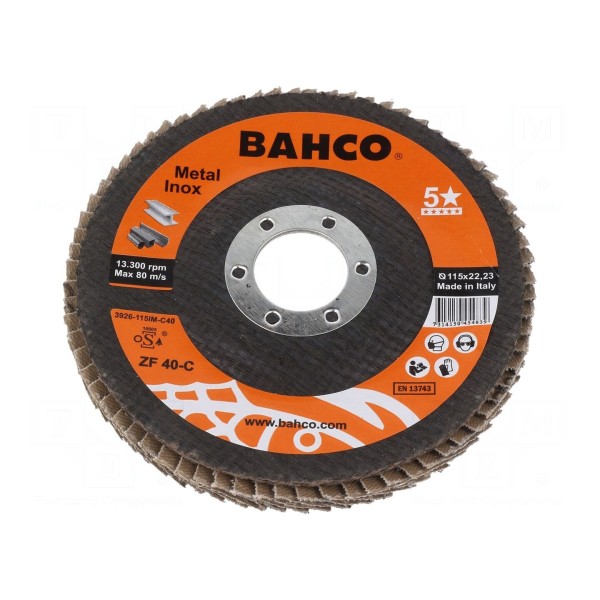 Tagi: Tarcza szlifierska płatowa BAHCO 3926-115IM-C40